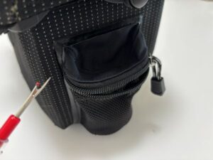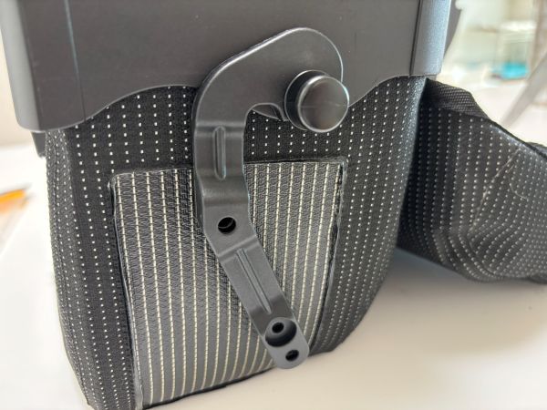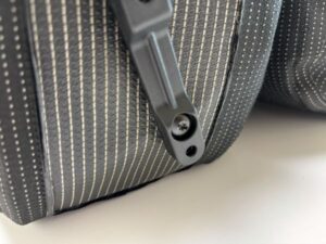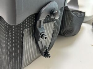 これは、バッグの両サイドにボトルケージを付けられるようになる!という代物です。