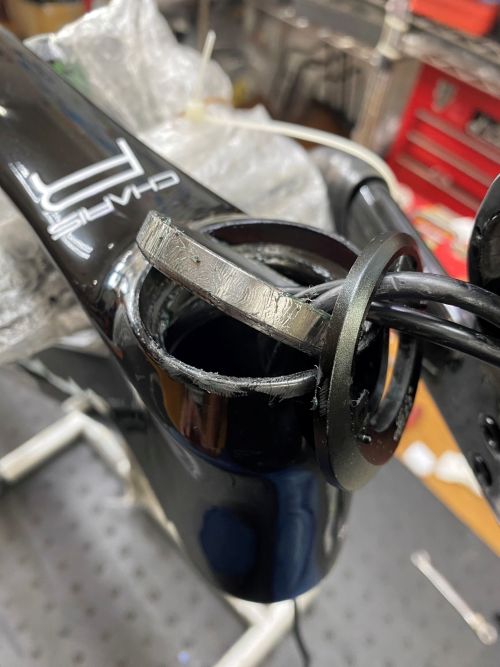 ずっとハンドルポジションに悩んでいましたが、何となく決まってきましたので、コラムをカットしてもらうことにしました。